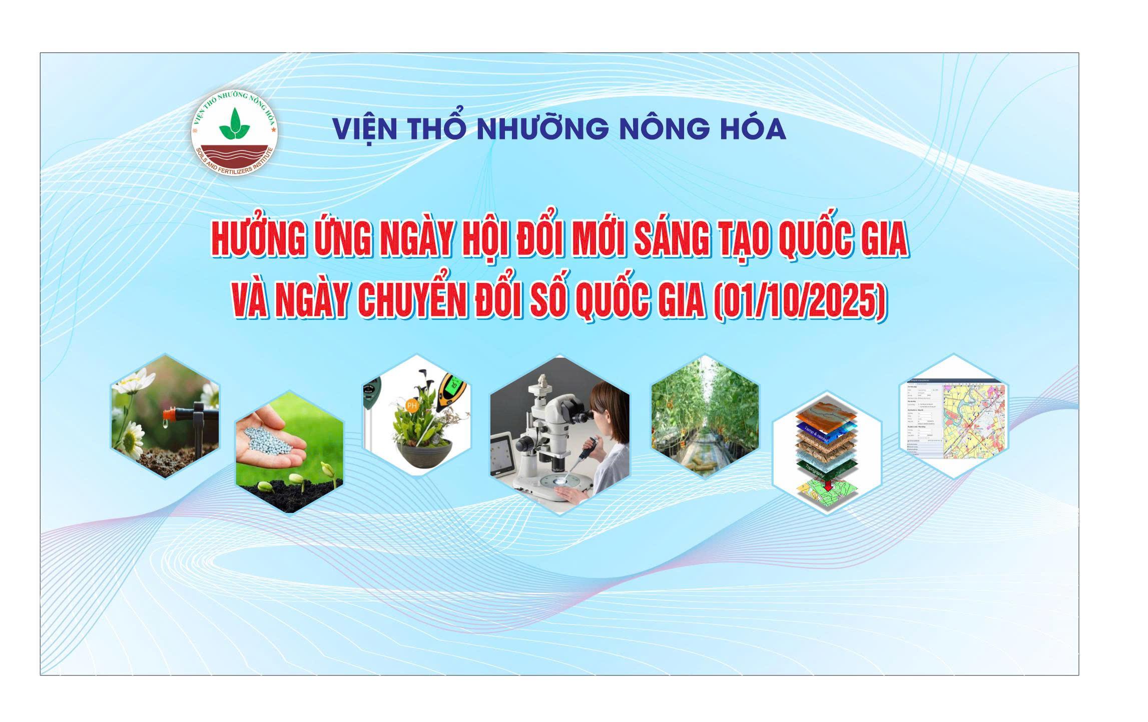 Hưởng ứng Ngày hội Đổi mới sáng tạo quốc gia (01/10) với chủ đề “Đổi mới sáng tạo toàn dân – Động lực phát triển quốc gia”, Viện Thổ nhưỡng Nông hóa tích cực lan tỏa tinh thần đổi mới, sáng tạo trong nghiên cứu khoa học, chuyển giao công nghệ và phát triển nông nghiệp bền vững - góp phần hiện thực hóa khát vọng phát triển đất nước dựa trên tri thức, công nghệ và đổi mới sáng tạo. ...