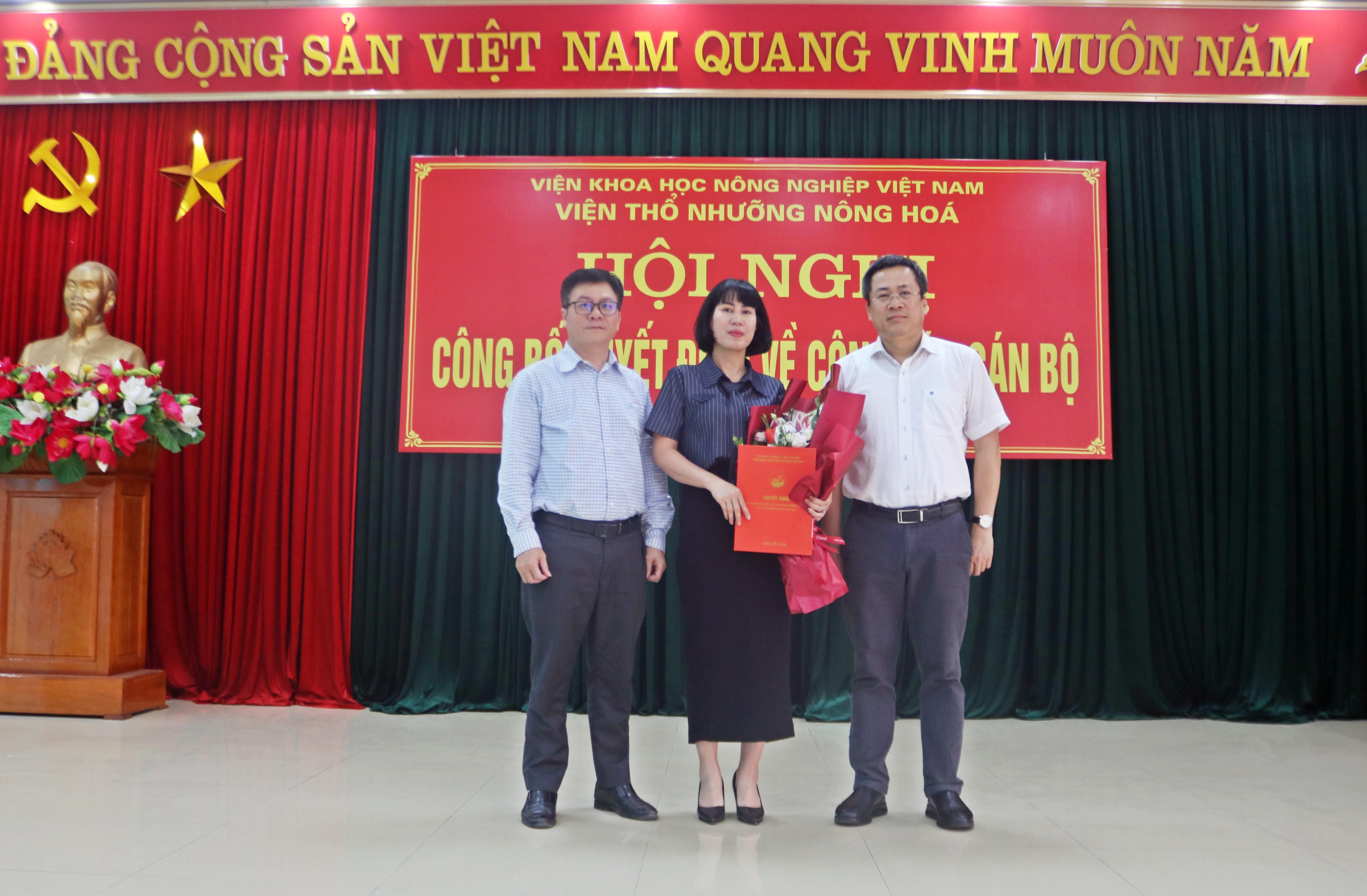 Đ/c Trần Minh Tiến - Đại diện lãnh đạo Viện Khoa học Nông nghiệp Việt Nam trao Quyết định bổ nhiệm cho Đ/c Trần Thị Minh Thu